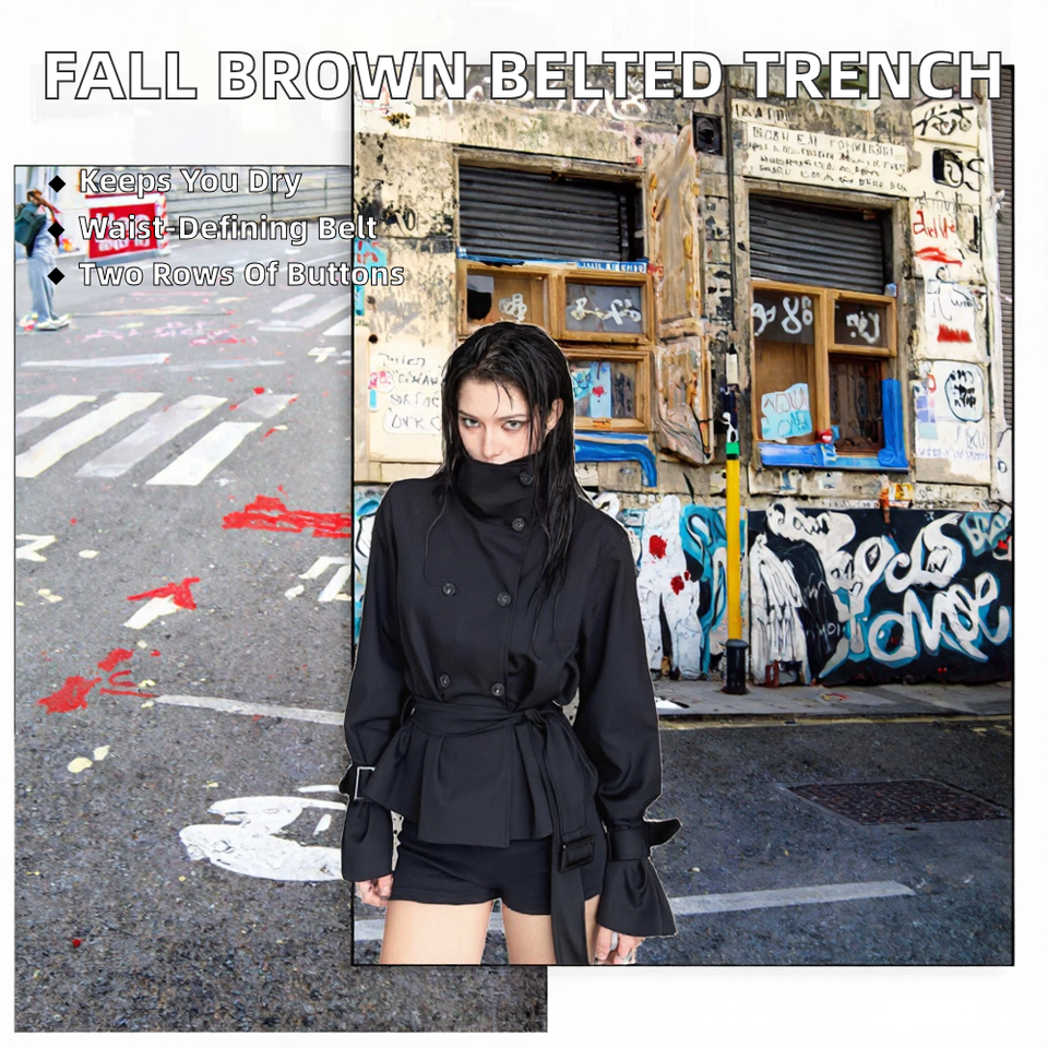 เสื้อโค้ทถักแบบกระดุมสองแถว สไตล์ฝรั่งเศส สีน้ำตาล สำหรับผู้หญิง คอลเลคชั่นต้นฤดูใบไม้ร่วง ปี 2025 แบบลำลอง มีเข็มขัดรัดเอว แฟชั่น