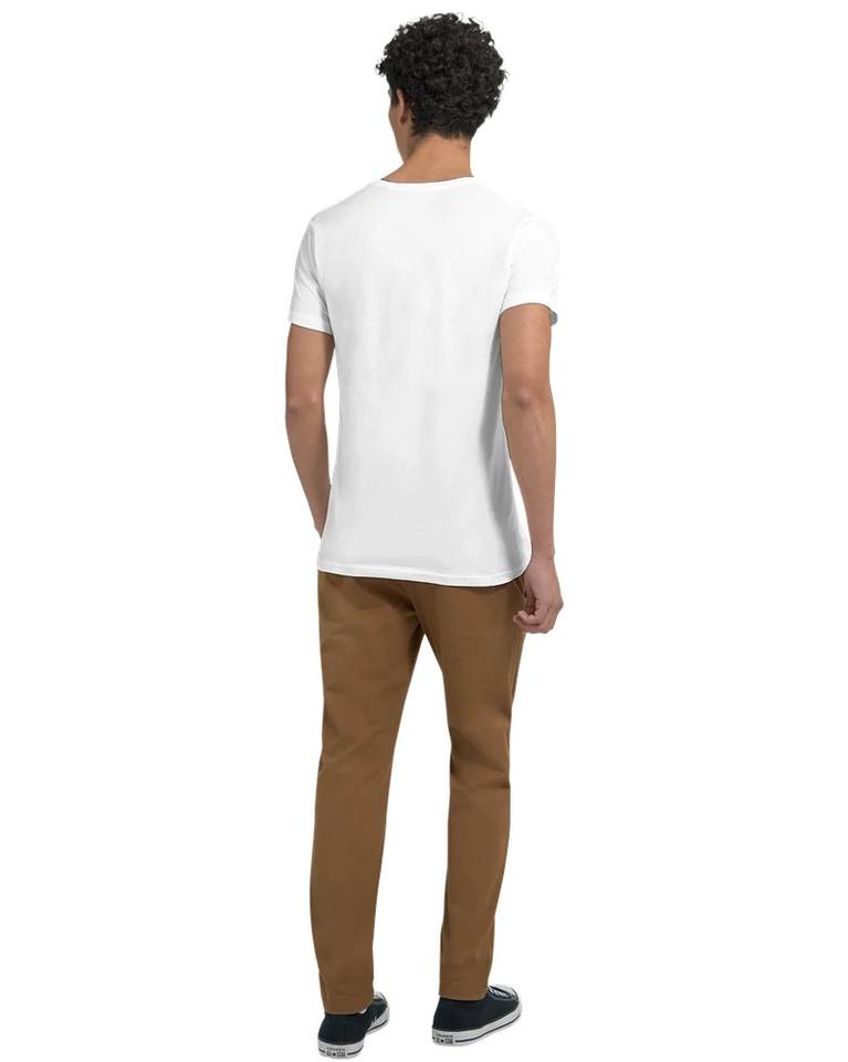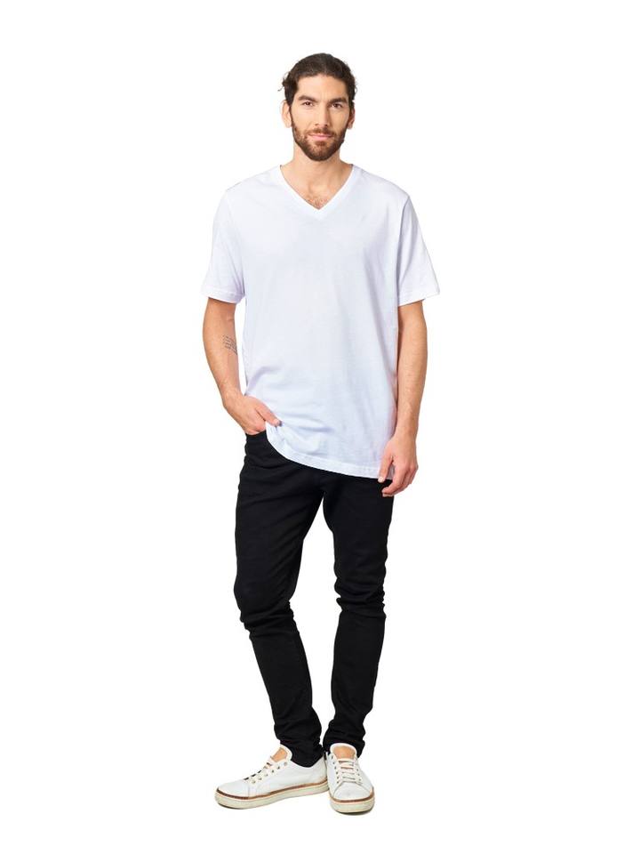 เสื้อยืดคอวีทรงพอดีตัวสำหรับผู้ชายผ้าฝ้ายออร์แกนิค100% เป็นมิตรกับสิ่งแวดล้อม2025