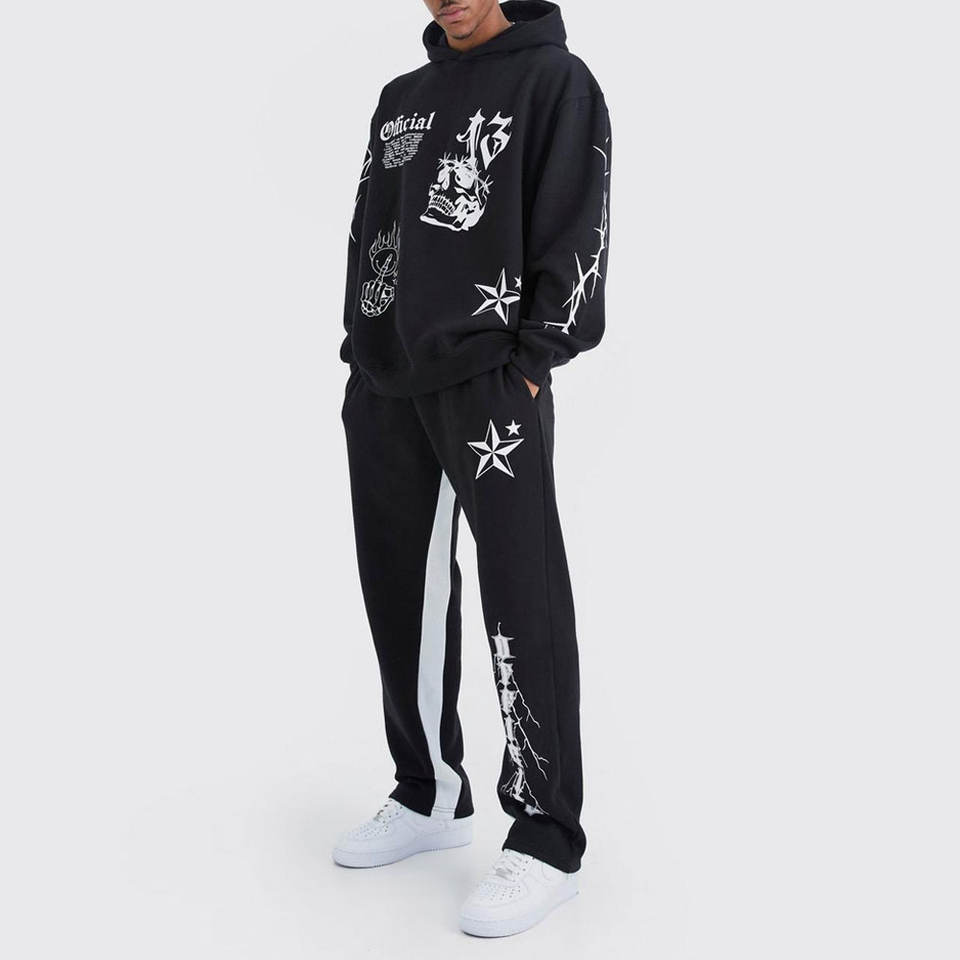 ชุดเซ็ตแทรคสูทผู้ชายผ้าฝ้ายรักษ์โลกปี 2025 พิมพ์ลายซิลค์สกรีน ชุดออกกำลังกายแฟชั่นทันสมัย