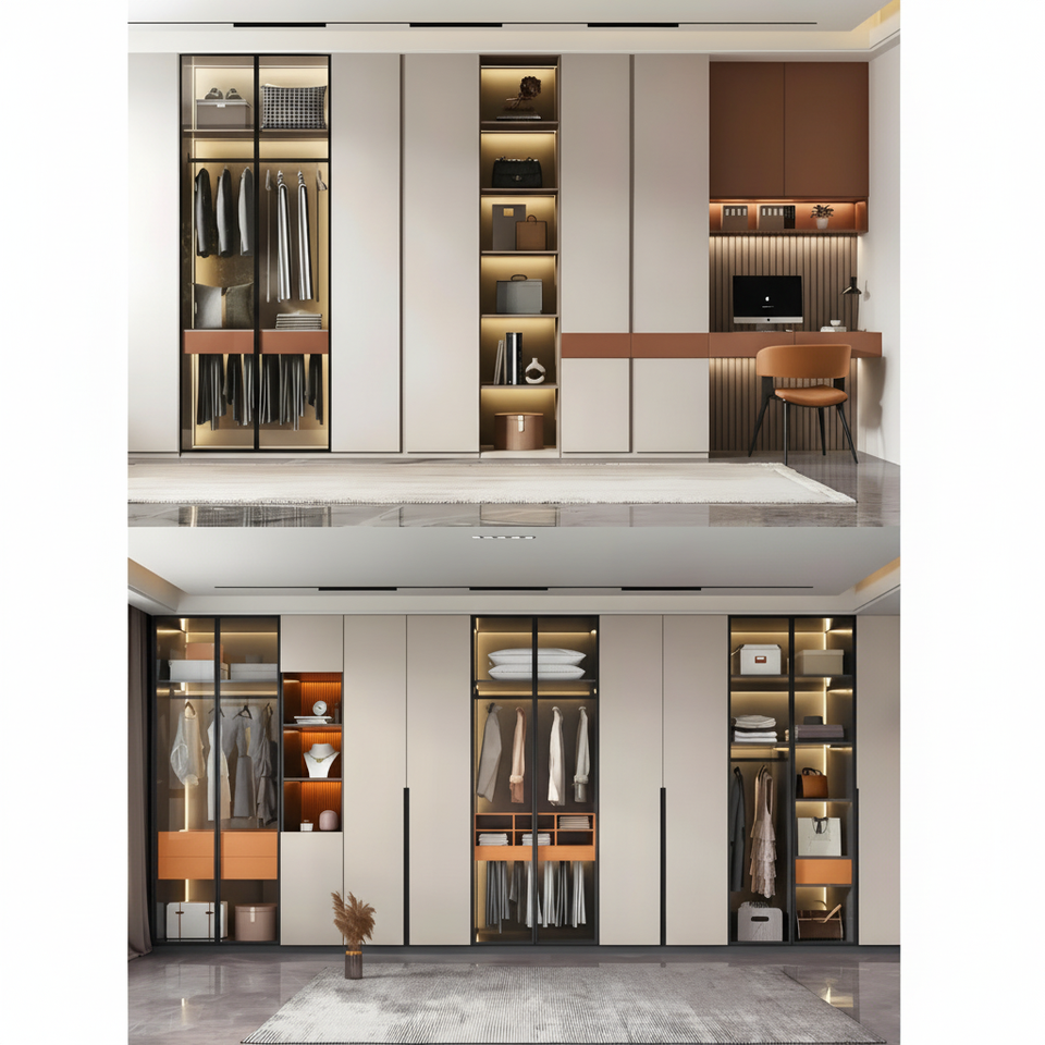 2025ตู้เสื้อผ้าไม้หรูหราออกแบบได้ตามต้องการสำหรับห้องนั่งเล่นที่เก็บของในบ้าน