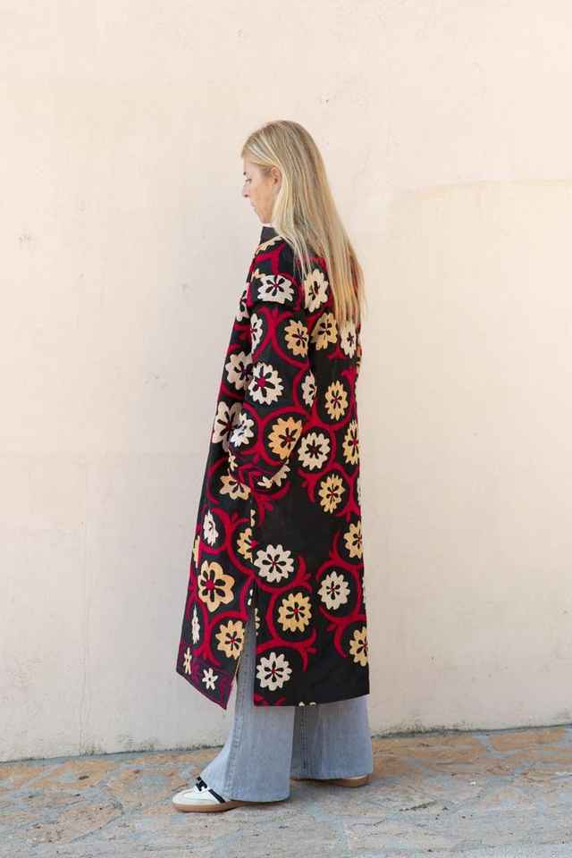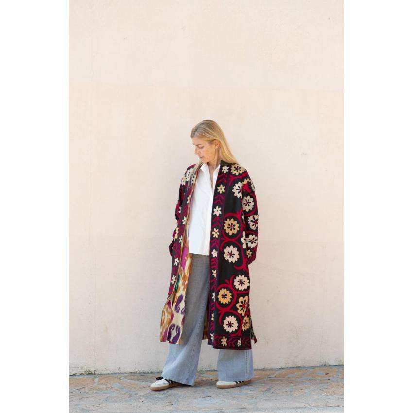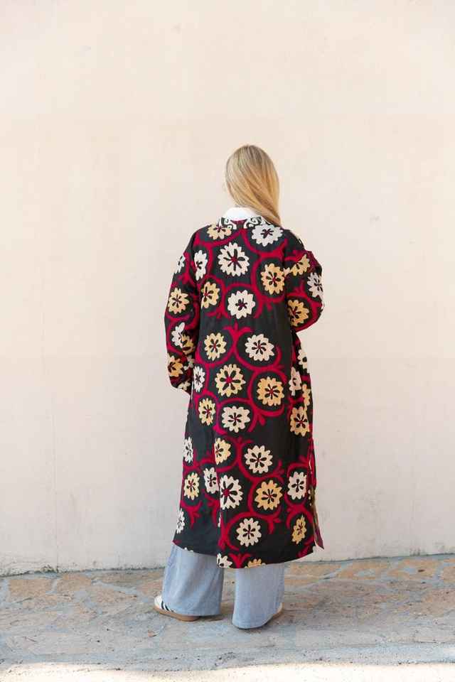 เสื้อแจ็คเก็ตบอมเบอร์ปักลายปี 2025 สไตล์โบฮีเมียน ผ้าแคชเมียร์อุซเบกิสถาน ลายครูเวล ของขวัญพิเศษคริสต์มาส คลาสสิก ซูซานี งานปักมือ ผ้าฝ้ายยาว