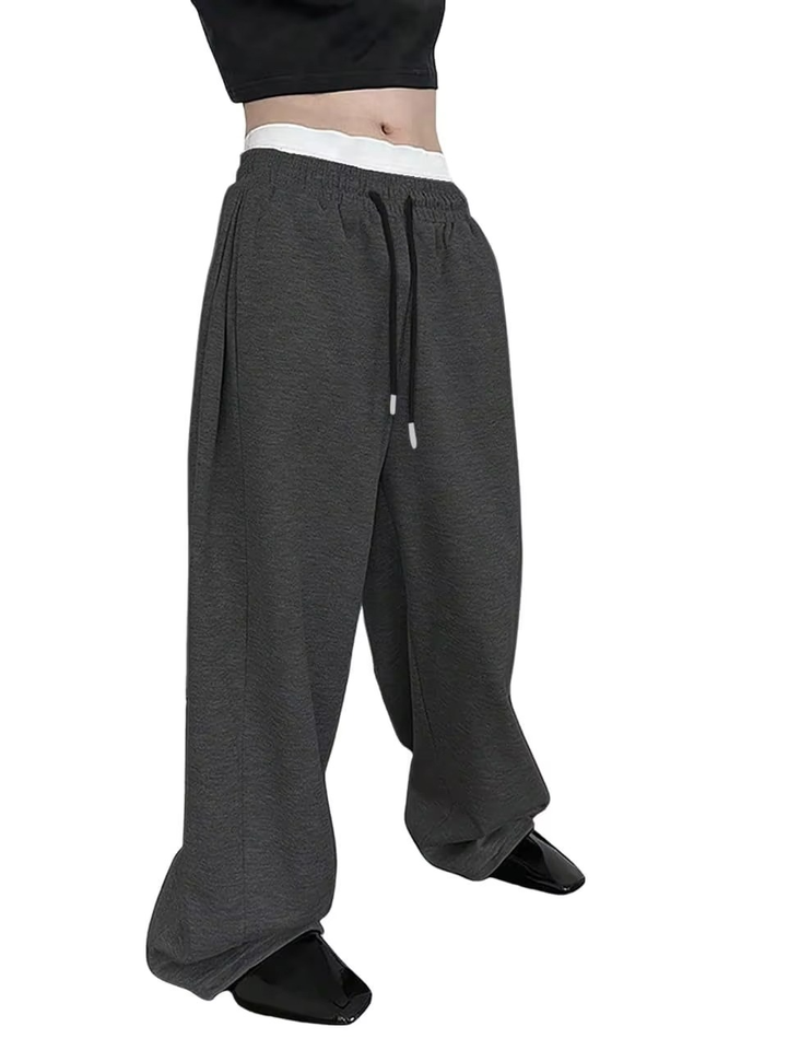 กางเกงวอร์มทรงตรงขากว้างไซส์ XL สำหรับผู้ชายสไตล์ยุโรป-อเมริกัน ปี 2025 ผ้าแคนวาส เอวยางยืด มีเชือกผูก ทรงหลวม สไตล์ลำลอง น้ำหนักเบา 100%