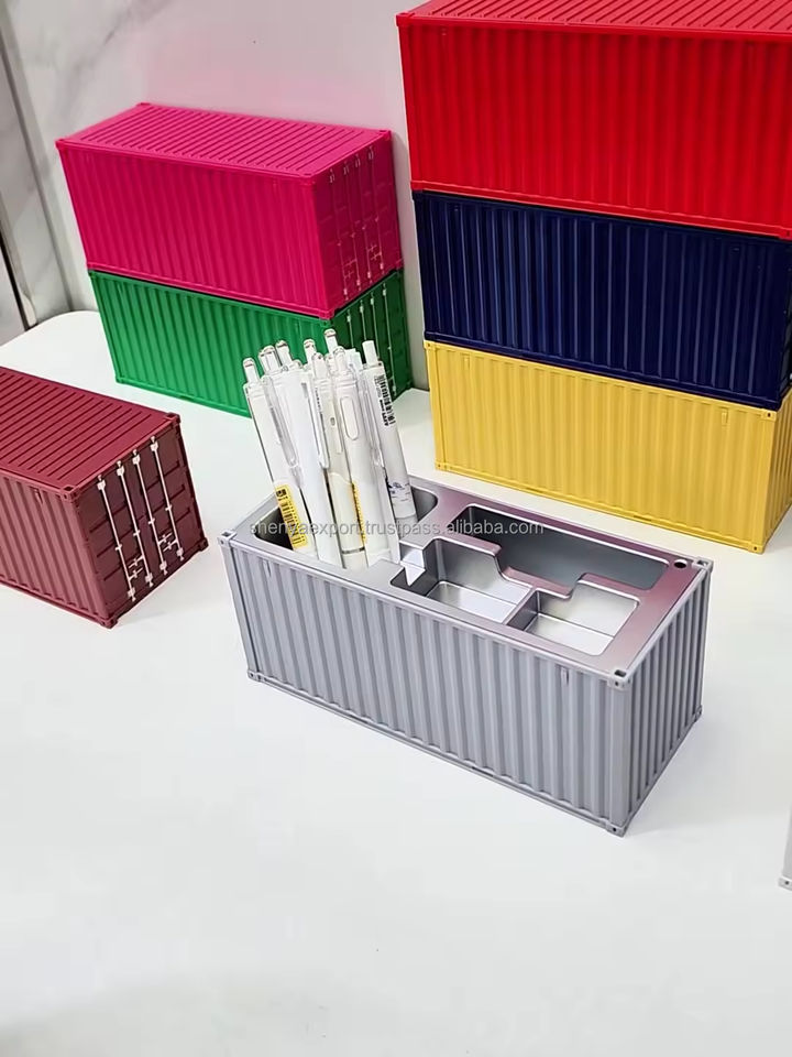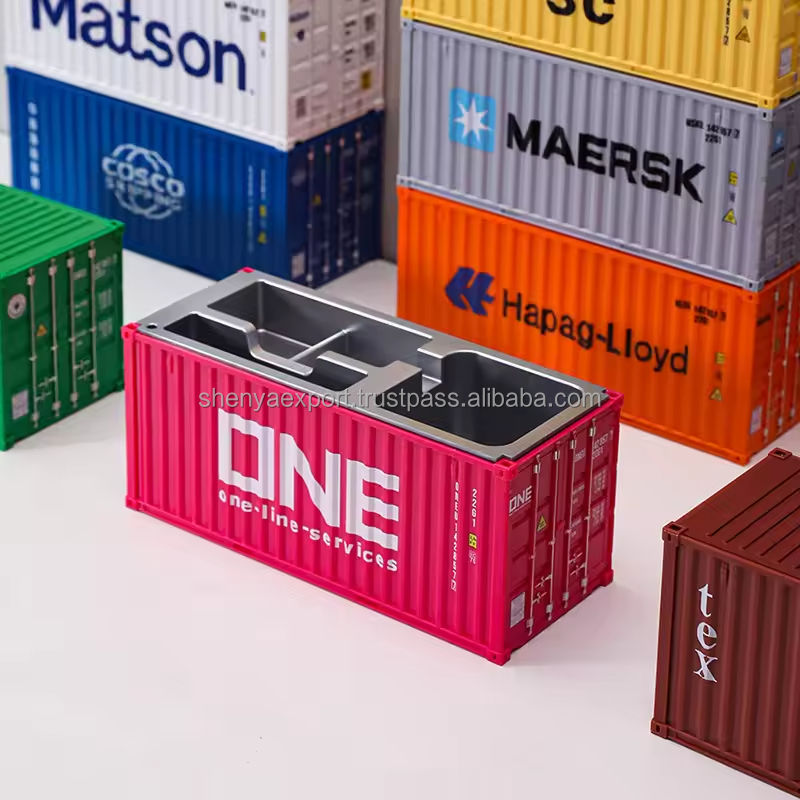 กล่องใส่ปากกาและบัตรแสดงอุณหภูมิรูปทรงตู้คอนเทนเนอร์ขนส่งสินค้าสี่เหลี่ยม ทำจากโลหะและพลาสติก สำหรับงานแสดงสินค้าหรูหรา ประจำปี 2025
