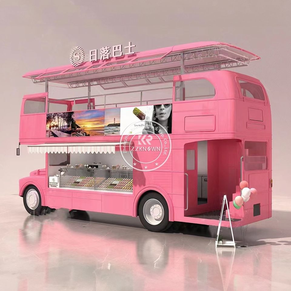 รถขายอาหารเคลื่อนที่แบบขยายได้ ปี 2025 รถพ่วงไฟฟ้าพับได้ พร้อมบันได 2 ชั้น พร้อมอุปกรณ์ครบครันสำหรับขายพิซซ่า