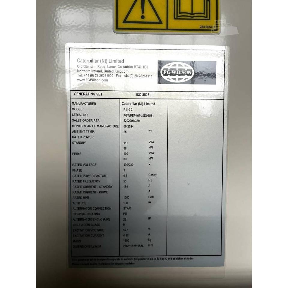สว่านเจาะแบบพกพา F G WILSON P110-3 ปี 2025 ระบบสตาร์ทอัตโนมัติและรีโมท แบบเฟสเดียวและสามเฟส เสียงเบา ความเร็ว 1800 รอบต่อนาที