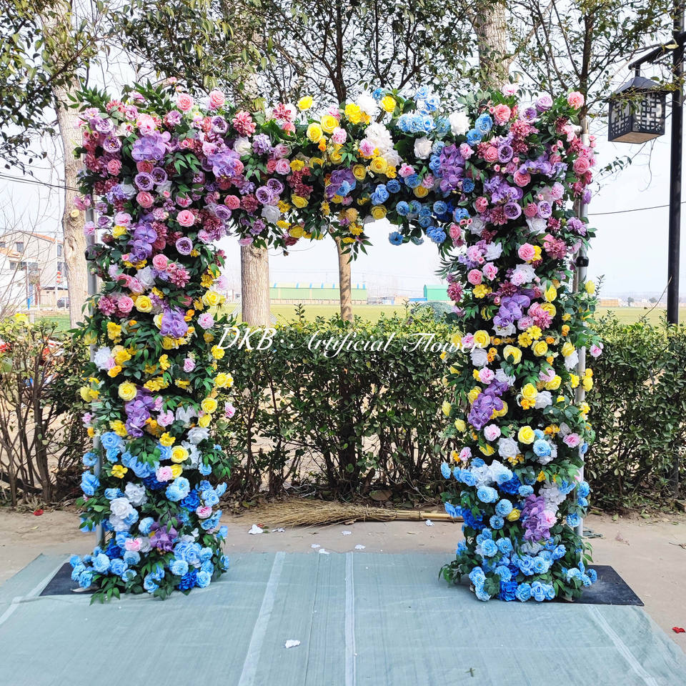 ซุ้มดอกไม้ประดิษฐ์ทำจากผ้าไหมสำหรับตกแต่งงานแต่งงานของตกแต่งซุ้มดอกไม้สีสันสดใส