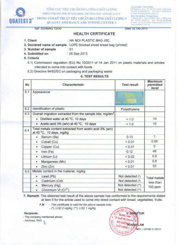 ชื่อแบรนด์:Hanoi Plastic Bag