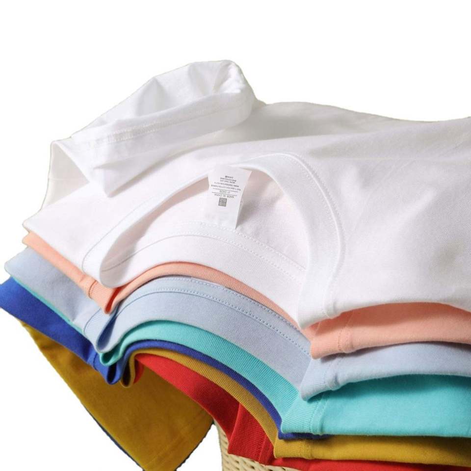 เสื้อยืดคอตตอนสีทึบของผู้ชายเสื้อคอตตอนแท้แบบถักสำหรับ2025