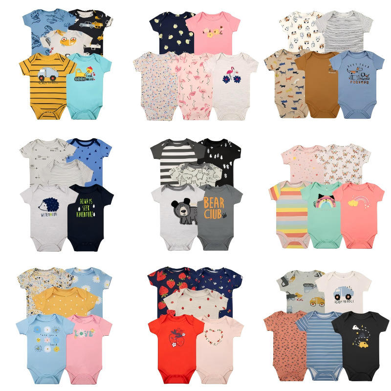 จั๊มสูทของเด็กผ้าคอตตอนแท้สำหรับเด็กผู้ชายและเด็กผู้หญิงจั๊มสูทพิมพ์ลายการ์ตูนสำหรับฤดูใบไม้ผลิและฤดูร้อนของ2025