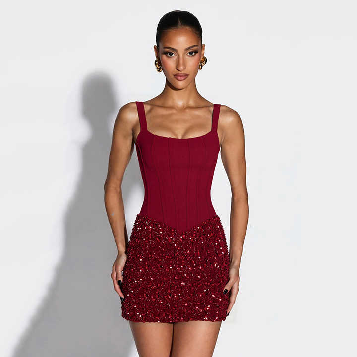 Sequined Decoration: Finely set sequins on the skirt add a sparkling effect, making the dress stand out in any setting and enhancing its visual appeal.