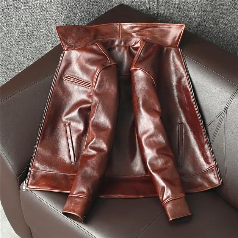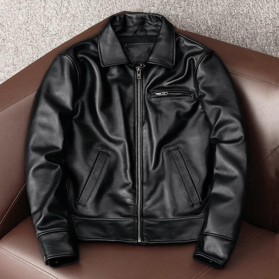 เสื้อแจ็คเก็ตหนังวัวแท้แฟชั่นปี 2026 สำหรับผู้ชาย
