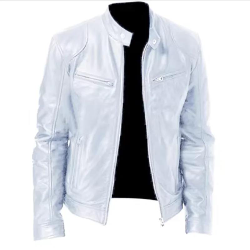 แจ็กเก็ตหนังแฟชั่น2025สำหรับผู้ชาย, แจ็กเก็ตหนังพียูคอตั้งทรงพอดีตัวกันลมมีซิป