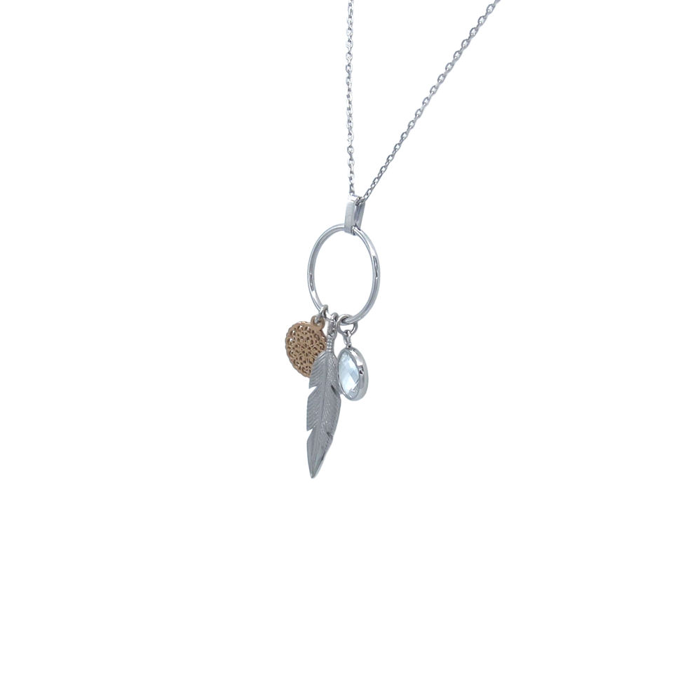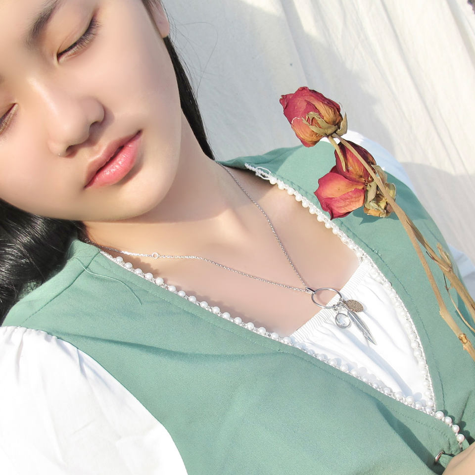 สร้อยคอจี้แฟชั่นยูนิเซ็กซ์ปี 2025 ดีไซน์หลายจี้ ประดับด้วยขนนกและดอกไม้ ทำจากสแตนเลสสตีลชุบเงิน+โรสโกลด์