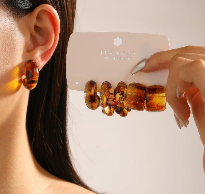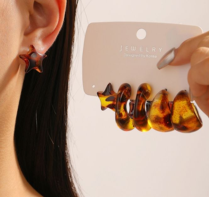 ต่างหูทรงดาวรูปตัว C ชุบทองสไตล์วินเทจใหม่ ปี 2025 ทำจากเรซิ่นสีน้ำตาล Maillard สำหรับผู้หญิง แฟชั่นทันสมัย เหมาะสำหรับงานปาร์ตี้