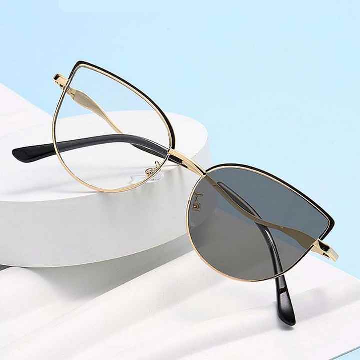 แว่นตาแฟชั่นสไตล์เรโทรปี 2025 สำหรับผู้หญิง กรอบโลหะทรงแคทอาย ป้องกันแสงสีฟ้า เปลี่ยนสีได้ตามสภาพแสง