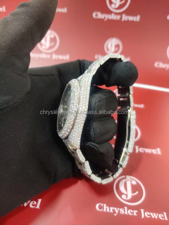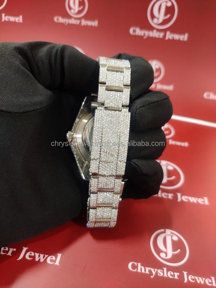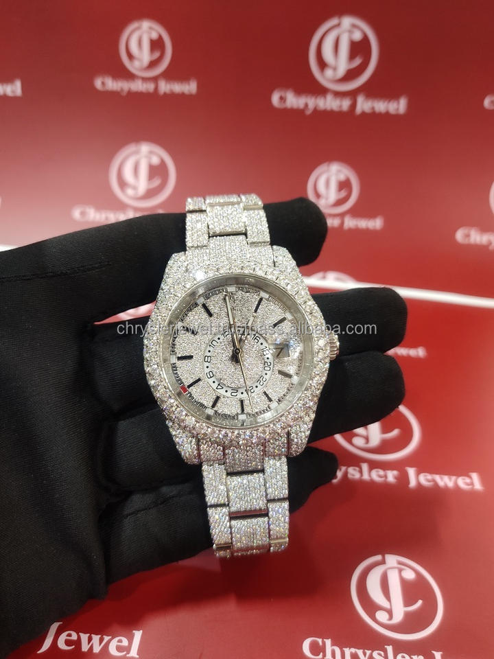 นาฬิกาแฟชั่น2025สำหรับผู้ชาย VVS Moissanite นาฬิกาข้อมือสแตนเลสทรงกลมแบบอัตโนมัติหรูหรากำหนดเองได้เพชร