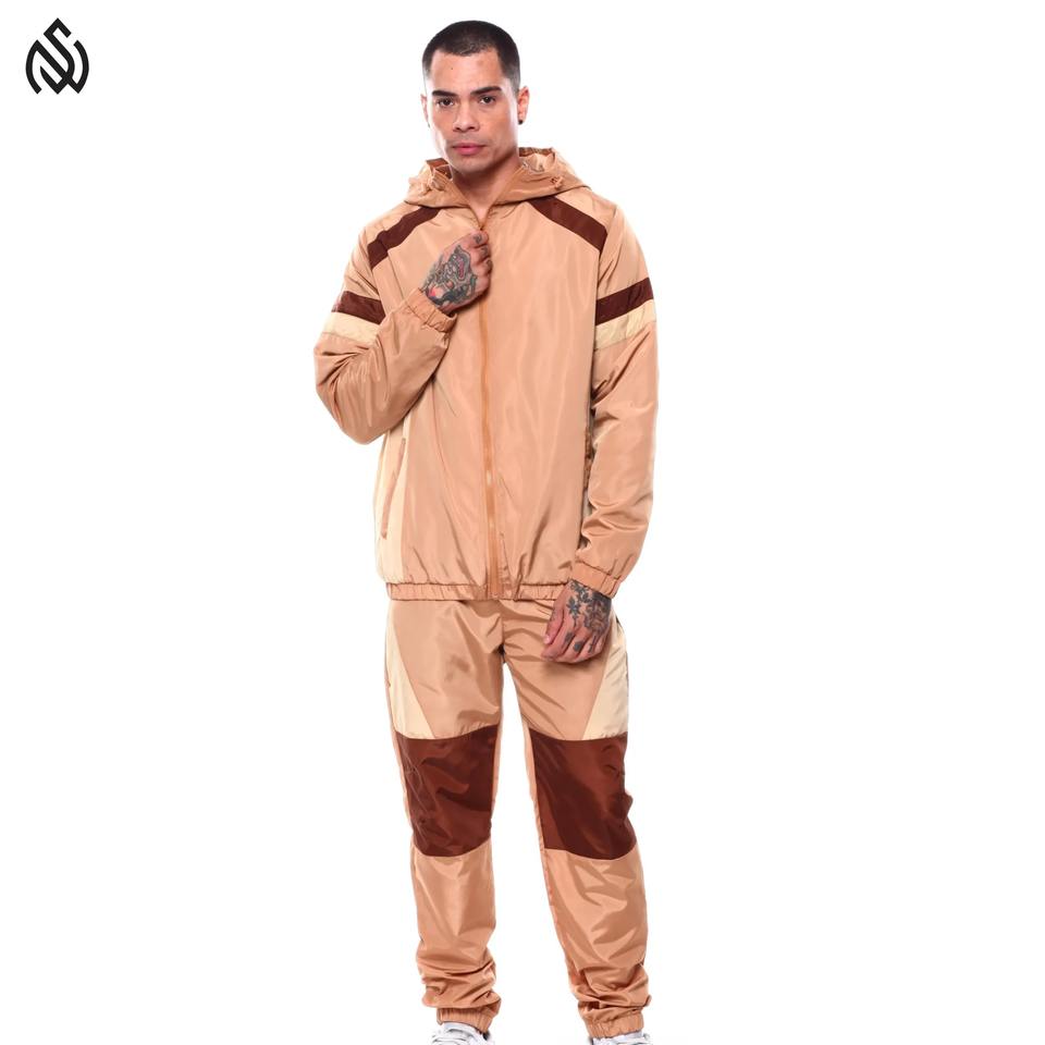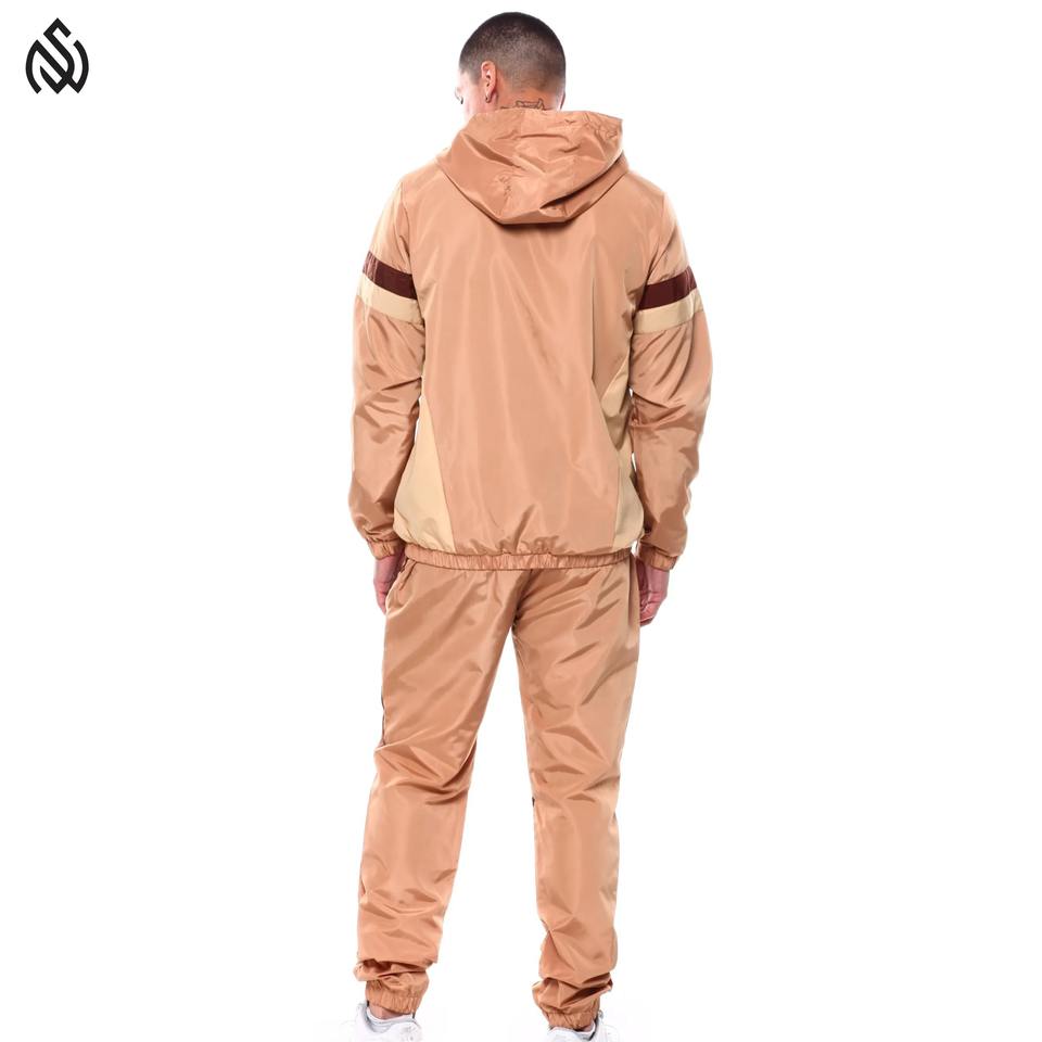 ชุดวอร์มสองชิ้นสำหรับผู้ชายชุดกันลมลำลองสำหรับผู้ชายชุดวอร์มเสื้อกันลมผ้าโพลีเอสเตอร์สำหรับผู้ชายโลโก้ตามสั่งทันสมัย2025