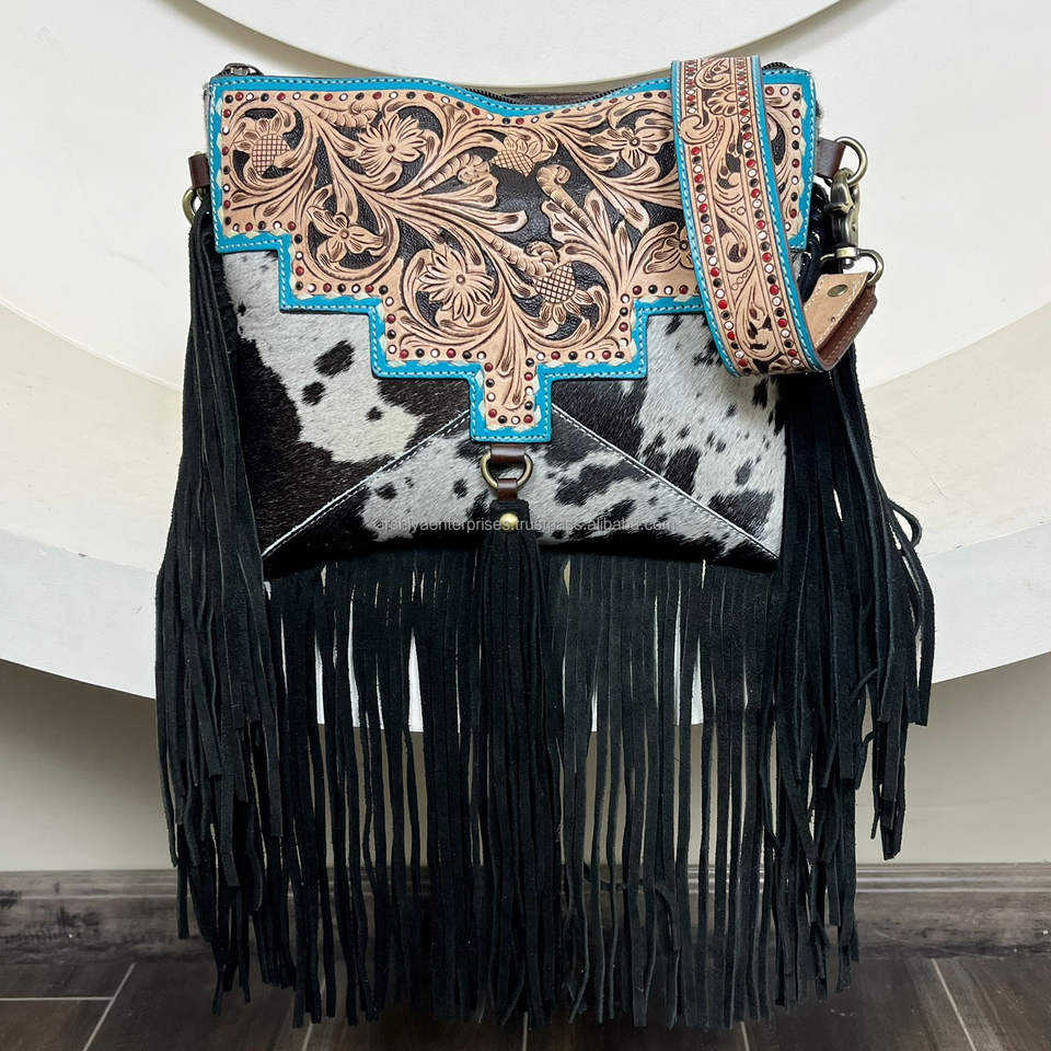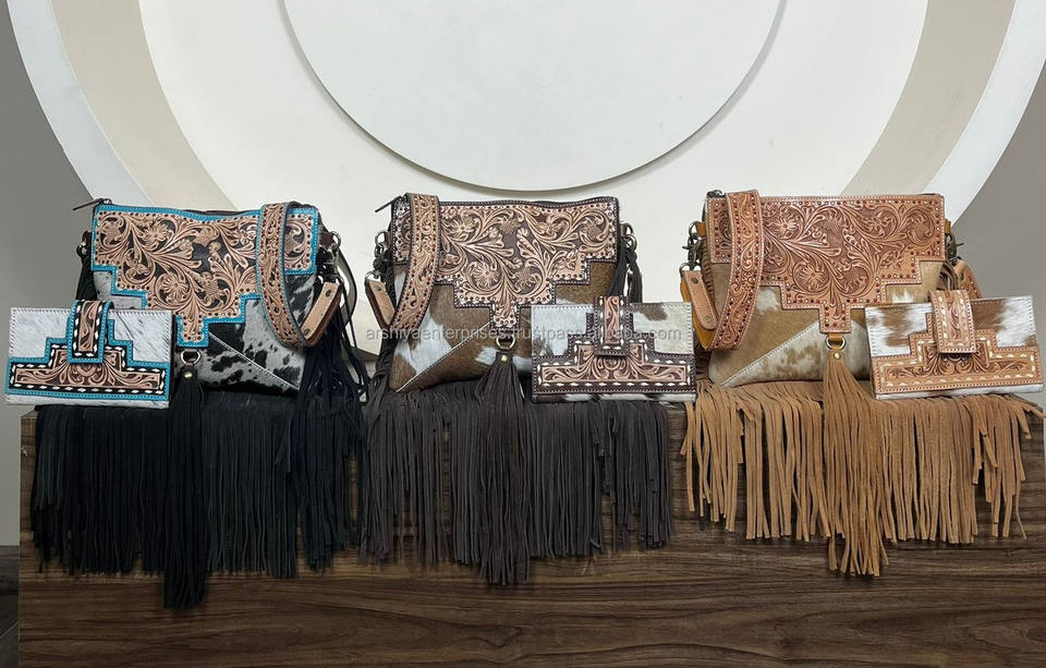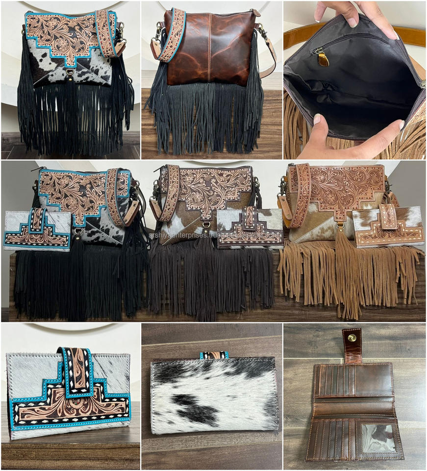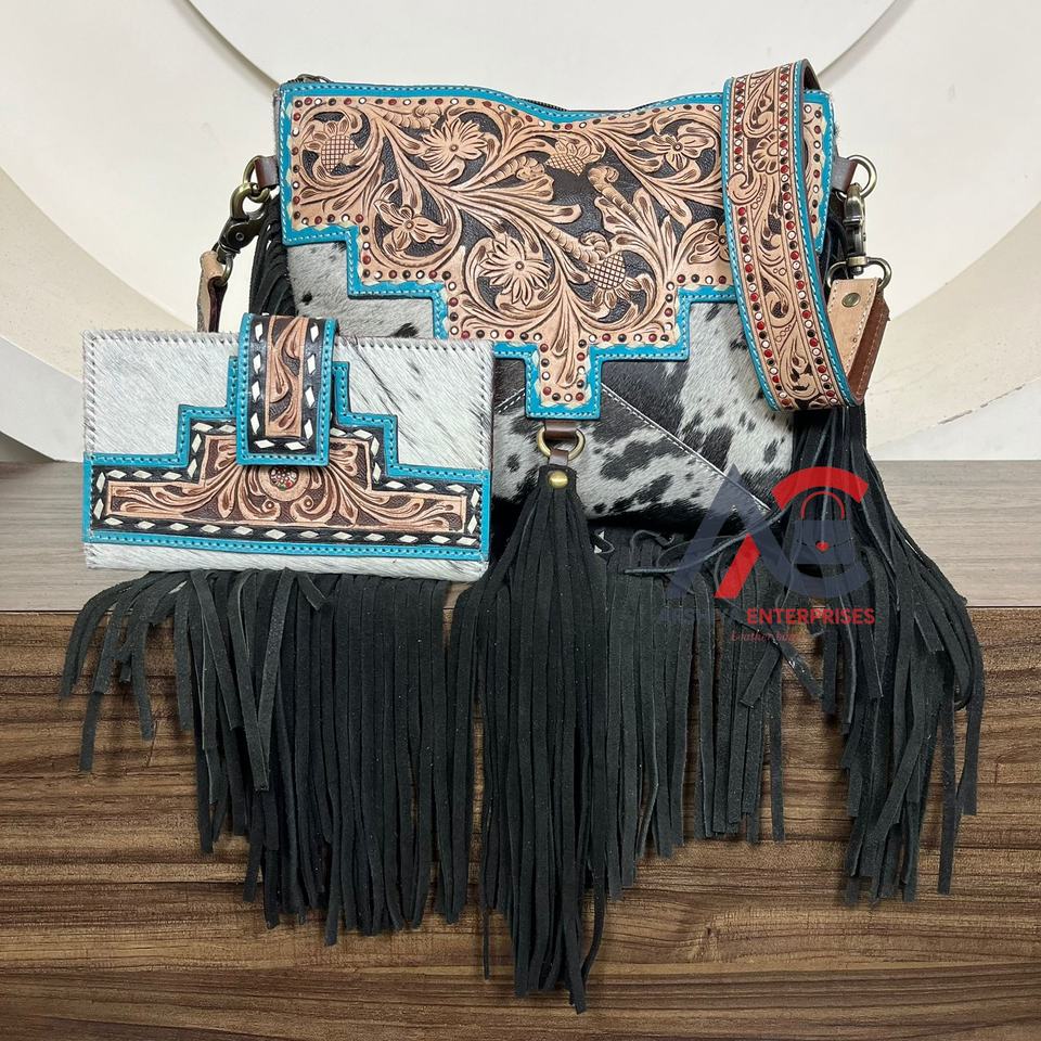 Product name:Hand Tooled Leather Fringe Bag & Cowhide Bifold Wallet