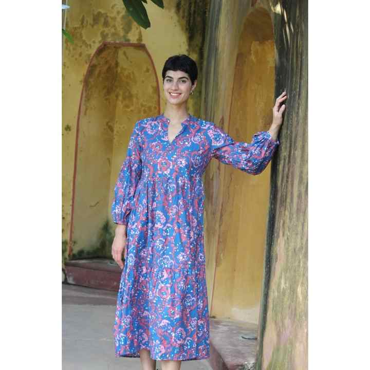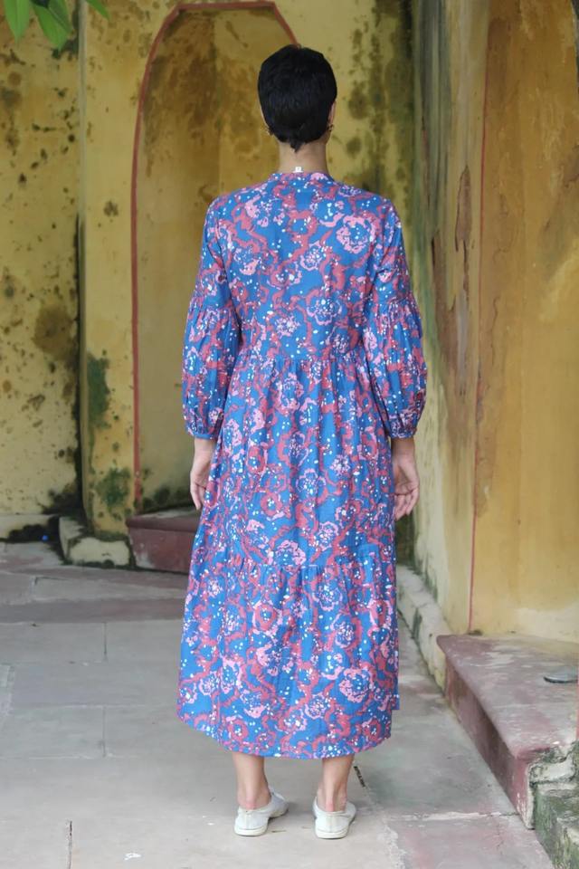 เดรสลำลองยาวถึงพื้นของผู้หญิงยาวถึงพื้นผ้าฝ้าย100% ลายดอกไม้พิมพ์ดิจิตอล2025