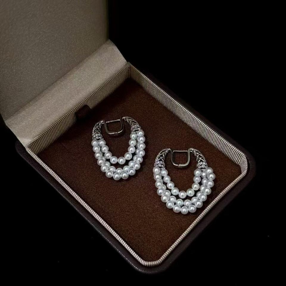 ต่างหูพู่มุกหลายชั้นสไตล์ฝรั่งเศสย้อนยุค ปี 2025 แฟชั่นใหม่ยอดนิยมสำหรับฤดูใบไม้ร่วงและฤดูหนาว