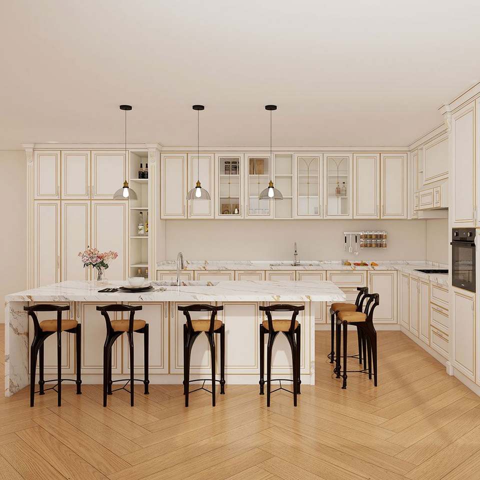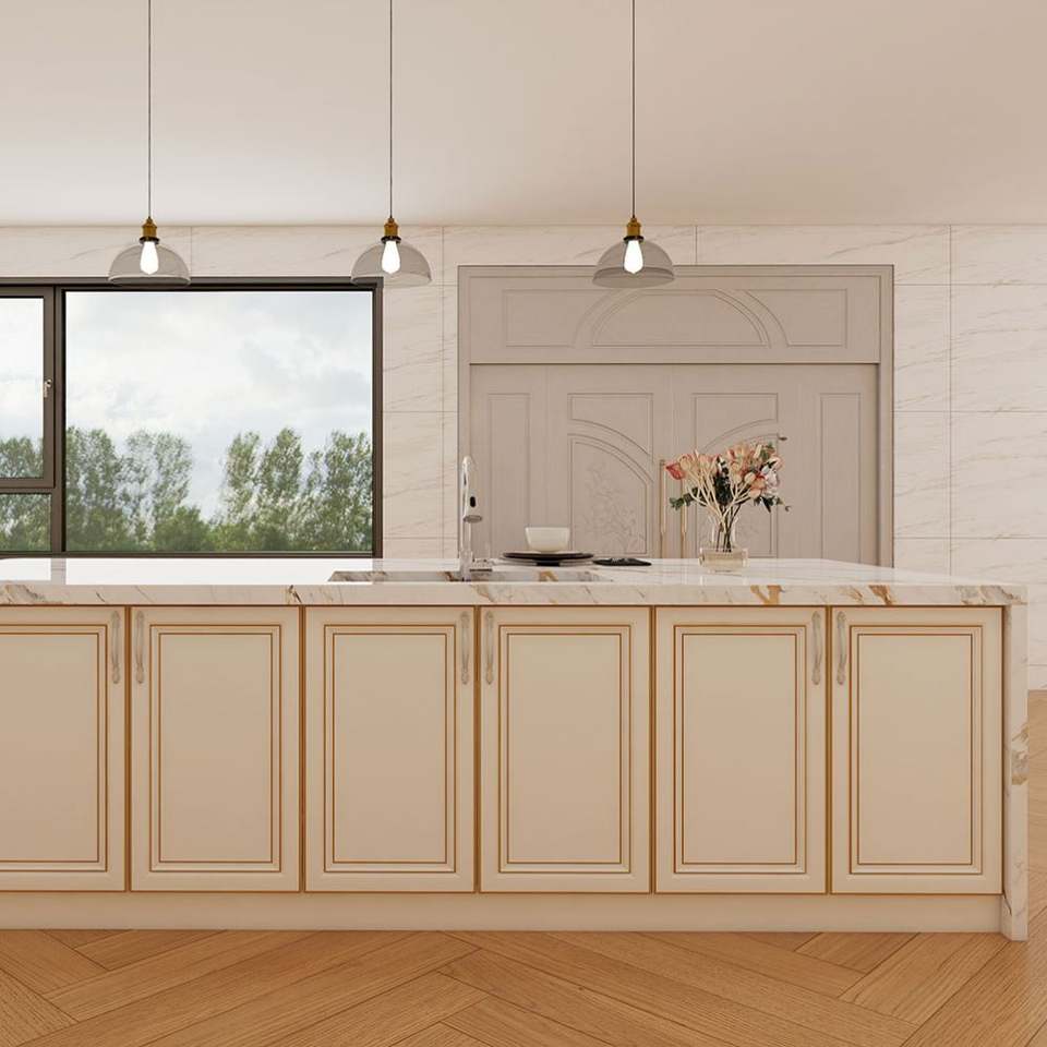 ชุดตู้ครัวสำเร็จรูปปี 2025 ออกแบบตามสั่ง แพ็คแบบแบน สีขาว โมเดิร์น หรูหรา ทำจากไม้จริง พร้อมอ่างล้างจาน ก๊อกน้ำ และหินอ่อน
