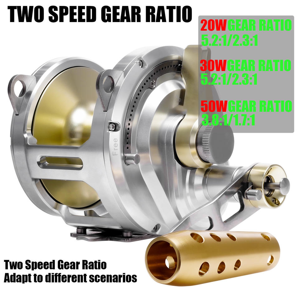 รอกตกปลา SAMOLLA 2025 แบบโลหะเต็มตัว 80LB อัตราทดเกียร์ 5.2:1 สำหรับมือขวา ตกปลาทูน่า ปลา GT ในทะเลน้ำลึก