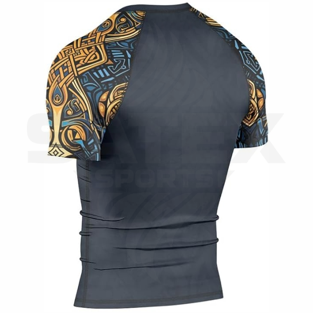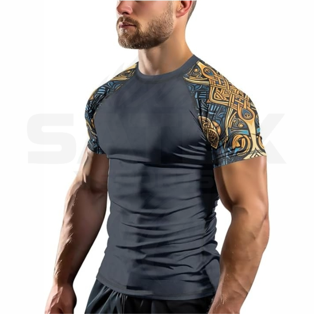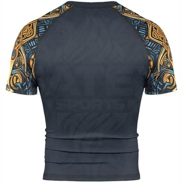 ชุดแรชการ์ดยิวยิตสู แขนสั้น ปี 2025 พิมพ์ลายแบบถ่ายโอนความร้อนเต็มตัว ป้องกันรังสียูวี ระบายอากาศ แห้งเร็ว แบบสั่งทำพิเศษ