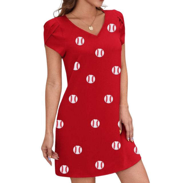 ชื่อผลิตภัณฑ์:ชุดเดรสผู้หญิงแขนสั้นแต่งระบายวันแข่งขัน