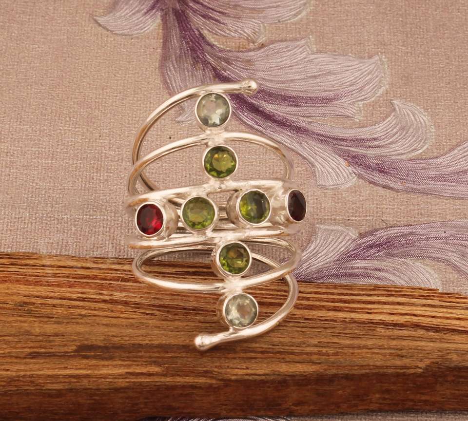 Product name:925 Sterling Silver Gemstone Garnet Peridot Ring
