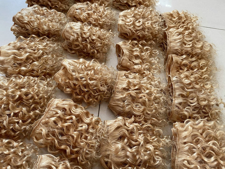ผมแพะโมแฮร์ ขนหางจามรี ปี 2025 แบบต่อผมสีบลอนด์หยิก สำหรับตุ๊กตาบลายธ์