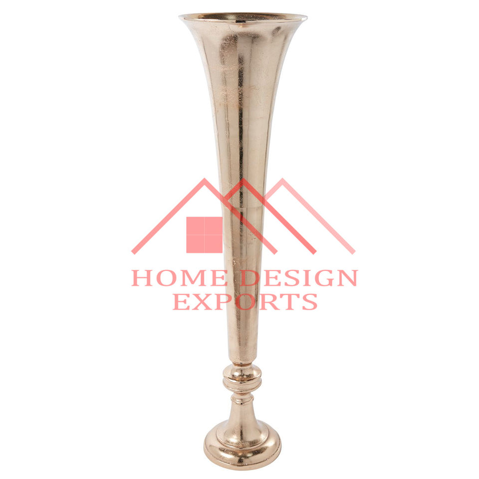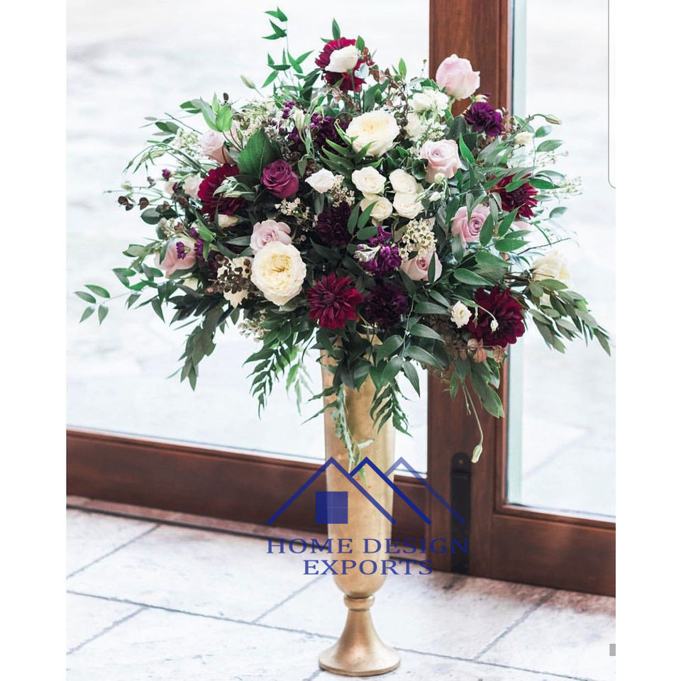 แจกันทรัมเป็ตสีทองสำหรับ2025สำหรับวางตรงกลางงานแต่งงานแจกันตั้งพื้นอลูมิเนียมทรัมเป็ตขนาดใหญ่ขายดีสำหรับตกแต่งสวน