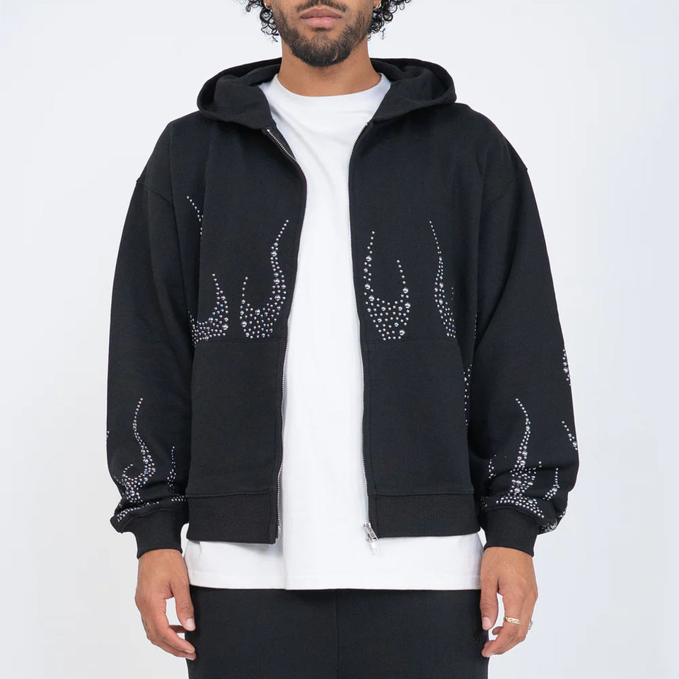 ชุดวอร์มผู้ชายมีฮู้ดประดับเพชรเทียม สำหรับฤดูหนาว ปี 2025 คุณภาพสูง ผลิตจากผ้าฝ้าย 100% เป็นมิตรกับสิ่งแวดล้อม ผลิตในปากีสถาน บริการ OEM จากผู้ผลิตที่ดี