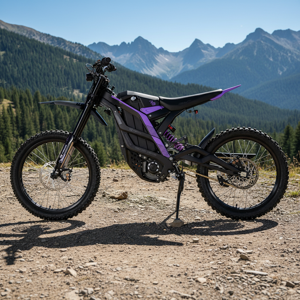 มอเตอร์ไซค์วิบากออลเทอร์เรนรุ่น HOT ปี 2025 สำหรับ Falcon Pro รถมอเตอร์ไซค์ไฟฟ้าวิบาก 72v 10kw ความเร็วสูงสุด >80 กม./ชม. สีดำม่วง ผลิตในจีน