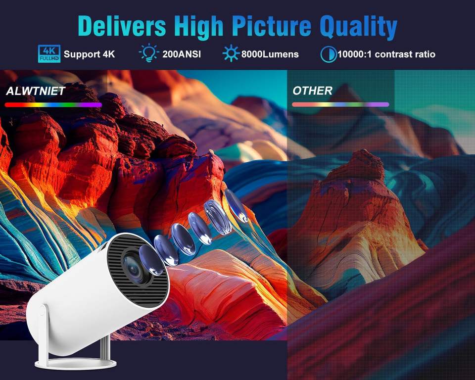 โปรเจคเตอร์พกพาขนาดเล็ก 2025 HY300 ความละเอียด 4K hd สมาร์ทโปรเจคเตอร์ 200 ลูเมน โฮมเธียเตอร์