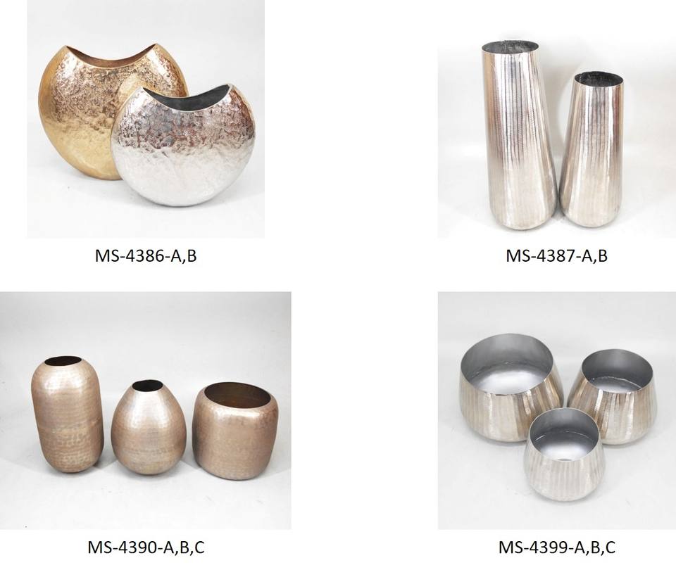 แจกันดอกไม้ทำจากโลหะบนโต๊ะ