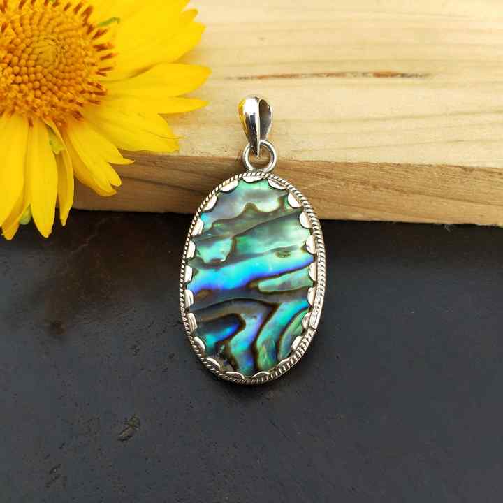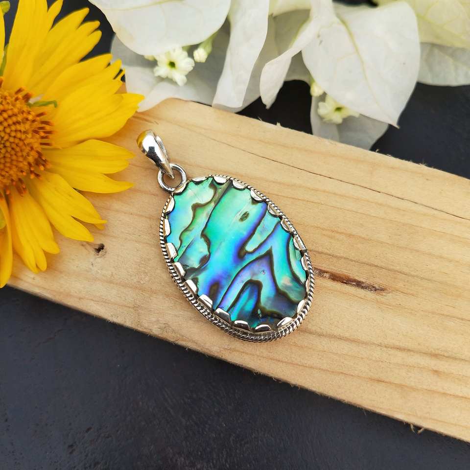 ชื่อผลิตภัณฑ์:จี้อัญมณีเปลือกหอยเป๋าฮื้อธรรมชาติทำด้วยมือสีเงิน