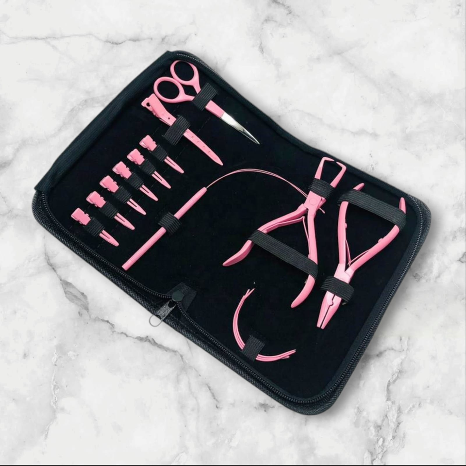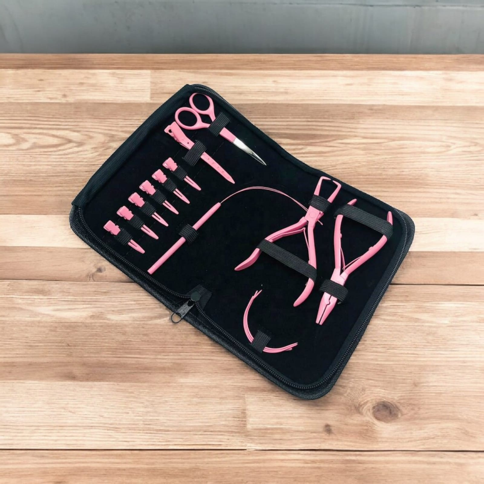 ชุดเครื่องมือต่อผมด้วยมือแบบ2025ชุดเครื่องมือดึงห่วงลูกปัดสีขาวและผิวคีมต่อผ้าอเนกประสงค์