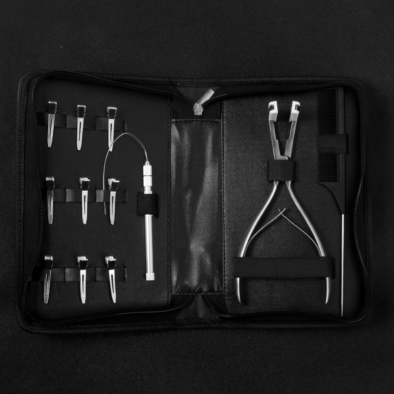 ชุดเครื่องมือต่อผมแบบมือถัก ปี 2025 พร้อมลูปดึงผมสีผิวและสีขาว ตะขอเกี่ยว คีมต่อผมแบบเวฟท์ อเนกประสงค์