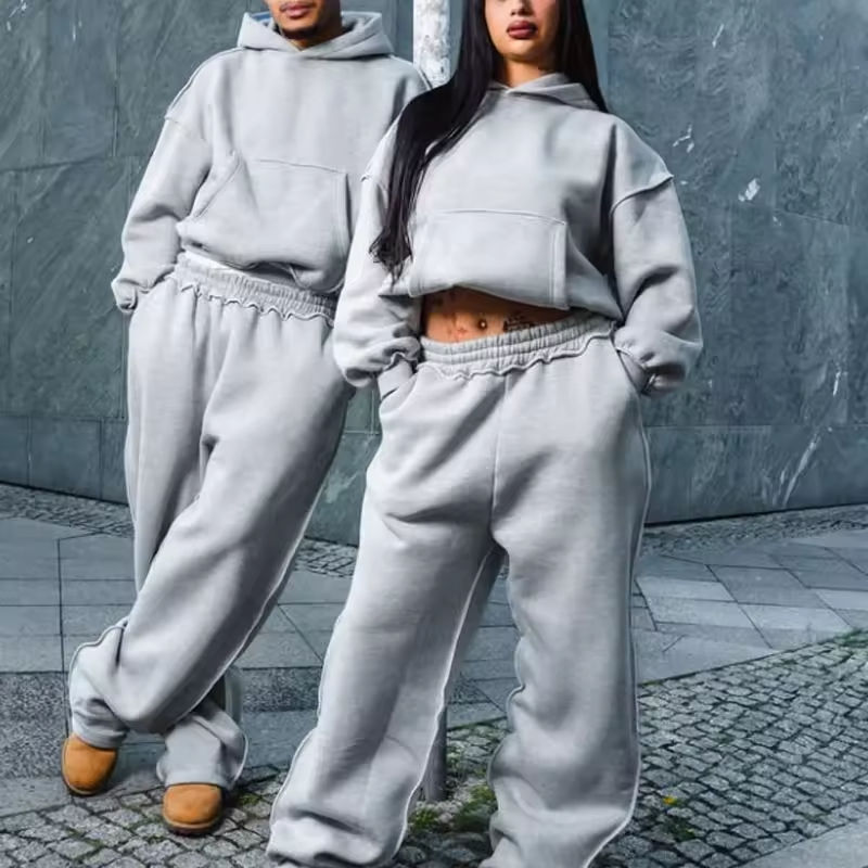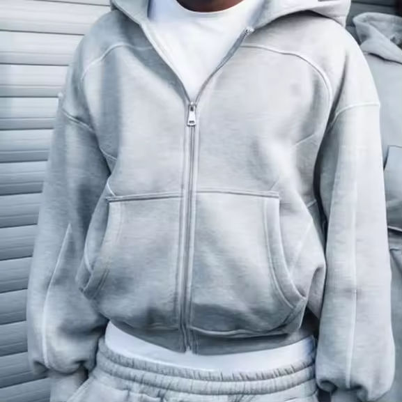 ชุดวอร์มเฮฟวี่เวทของผู้ชายเสื้อมีฮู้ดและกางเกงวอร์มผ้าเฟรนช์เทอร์รี่มีซิปสองชั้นระบบ GSM 500ชุด
