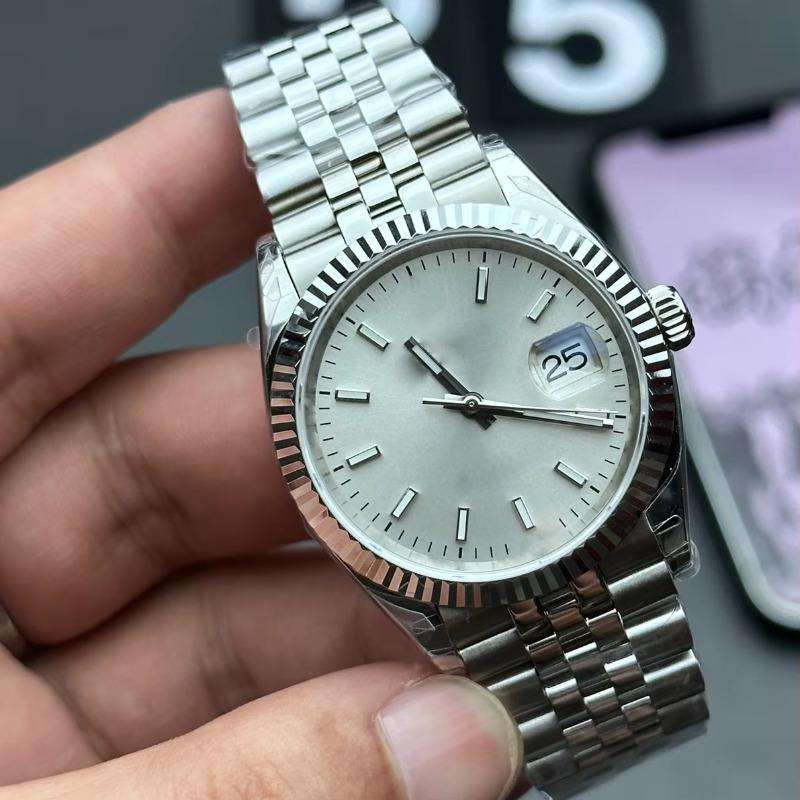 นาฬิกากลไกสำหรับผู้ชายระดับไฮเอนด์สายเหล็กแนวธุรกิจเรียบง่ายพร้อมปฏิทินสำหรับ2025