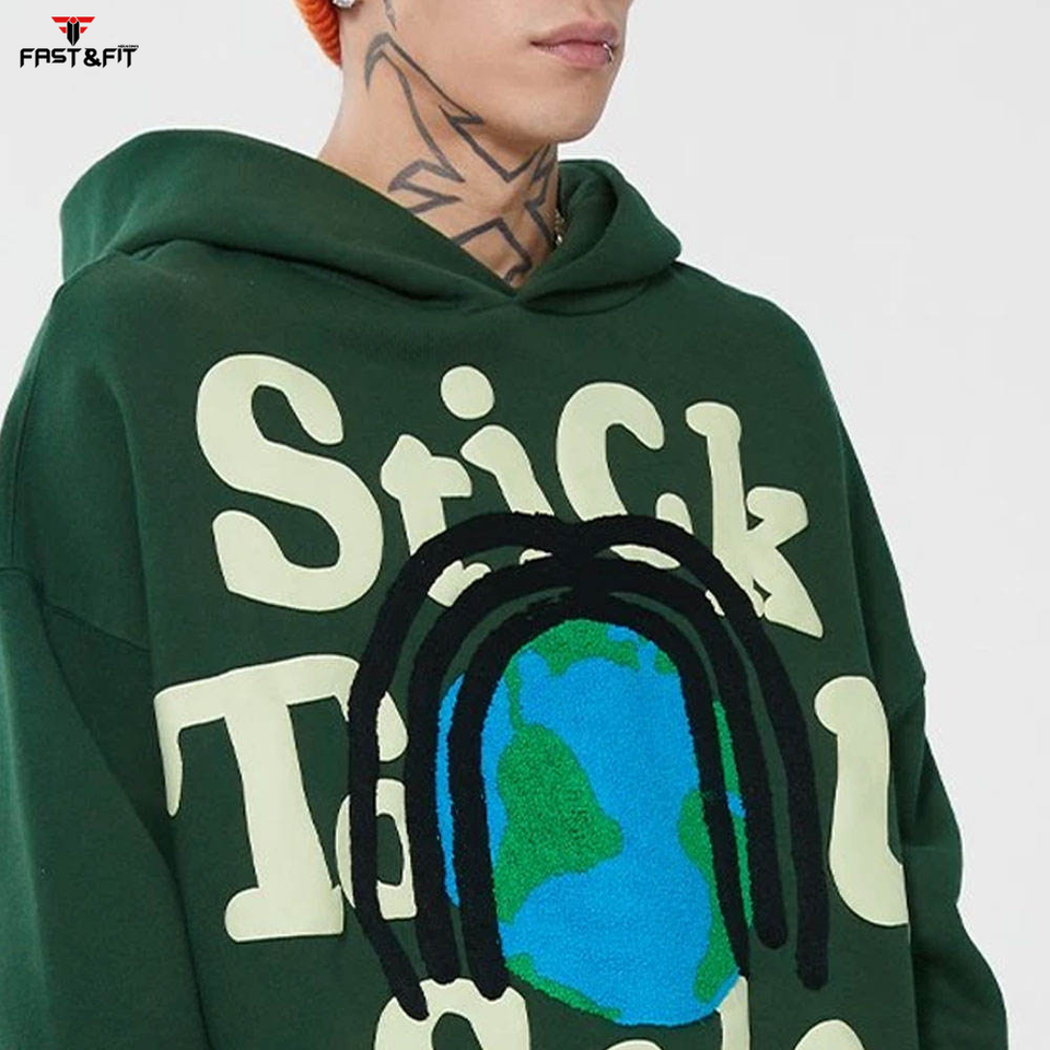 เสื้อฮู้ดดี้ผู้ชายคุณภาพสูง ปี 2025 แขนยาว ไซส์ใหญ่ ปักลาย สีพื้น ย้อมสี ผลิตในปากีสถาน สำหรับกิจกรรมกลางแจ้ง พิมพ์ลายดิจิทัล ซักแบบสโตนวอช