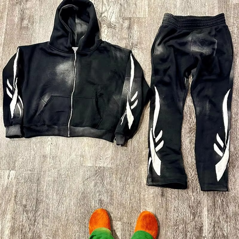 2025ชุดวิ่งออกกำลังกายผ้าฟลีซมีฮู้ดสีพื้นพิมพ์ลายสำหรับผู้ชายและผู้ชายชุดวอร์มกางเกงมีฮู้ดสำหรับฤดูหนาวผ้าฝ้าย100% ออกแบบได้ตามต้องการ