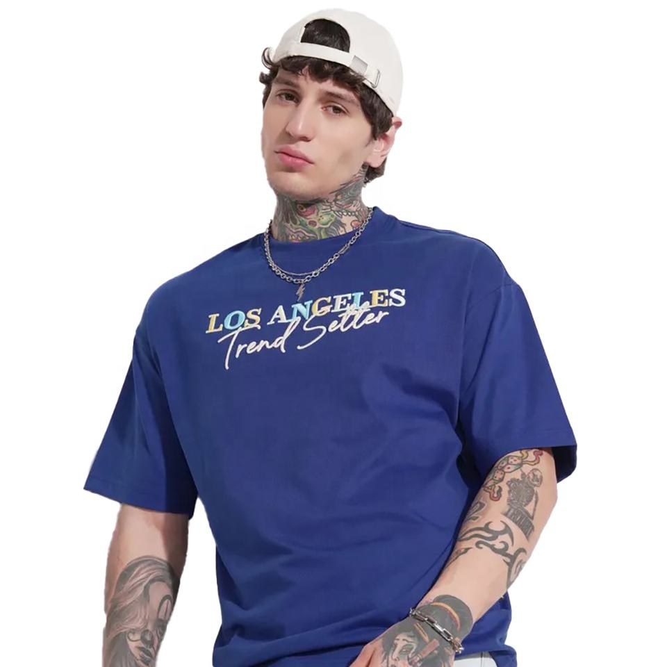 2025เสื้อยืดผ้าฝ้ายถักฮิปฮอปสำหรับผู้ชายไซส์ใหญ่พิเศษโลโก้ LWK-TS-152 100%