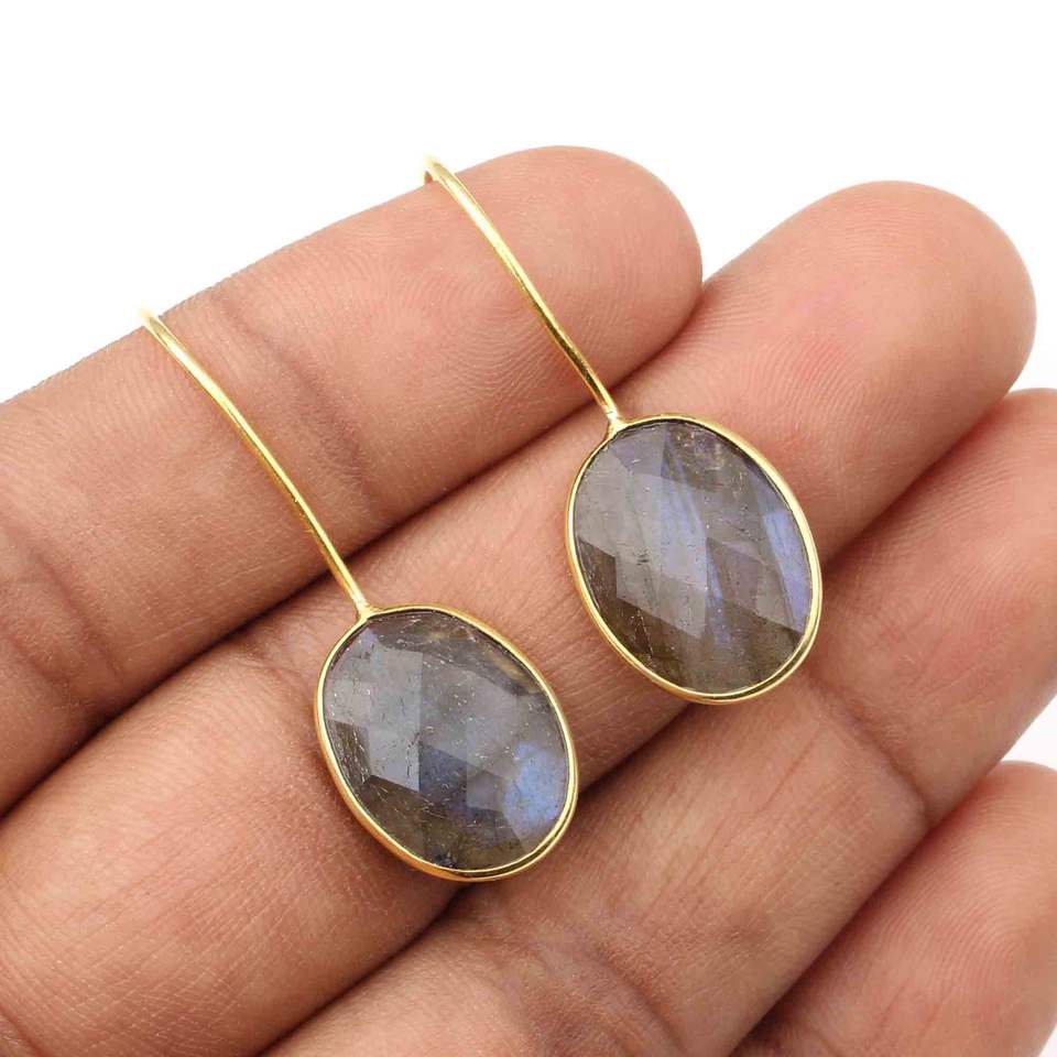 2025คุณภาพสูงต่างหูแบบห้อยสไตล์ลาบราดอไรต์ธรรมชาติทรงรี925เงินแท้คุณภาพดีของขวัญสำหรับงานแต่งงานและงานวันเกิด