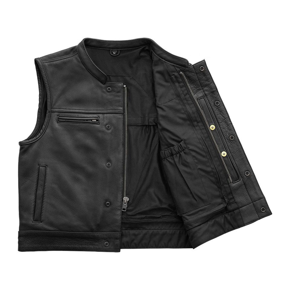 เสื้อกั๊กผู้ชายหนังรถจักรยานยนต์สีดำล้วนมีกระเป๋าด้านหน้าเสื้อกั๊ก2025