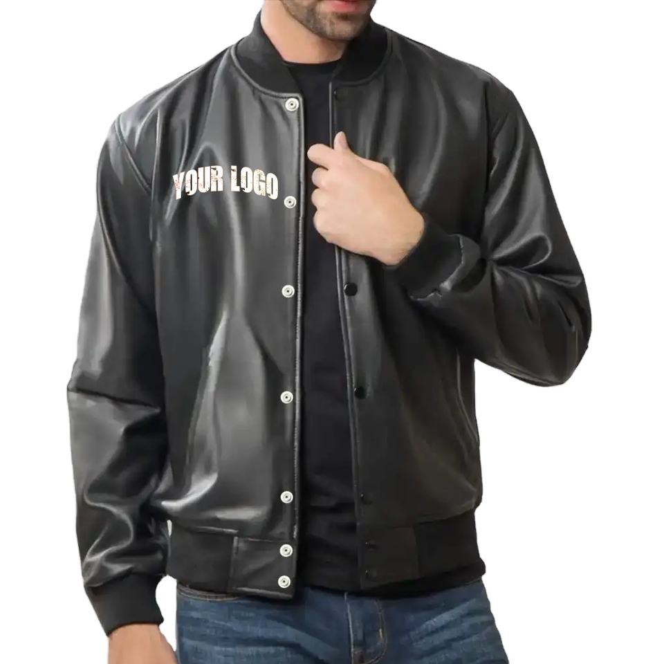 เสื้อแจ็กเก็ตทีมวิทยาลัยสีดำสำหรับผู้ชายปักลายเบสบอลของผู้ชายเสื้อแจ็กเก็ตหนังตัวอักษรทรงสูงสำหรับฤดูหนาว2025