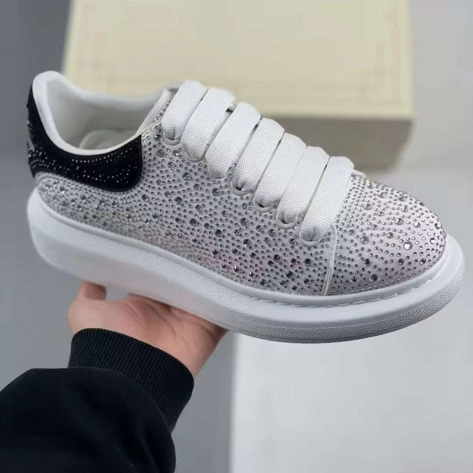 รองเท้าผ้าใบหนังแก้วแบบลำลองประดับคริสตัล ดีไซน์คลาสสิกคุณภาพสูง แบรนด์ดัง ออกแบบเองได้ รุ่นปี 2025 รองเท้าหรูหราทันสมัยสำหรับผู้ชาย