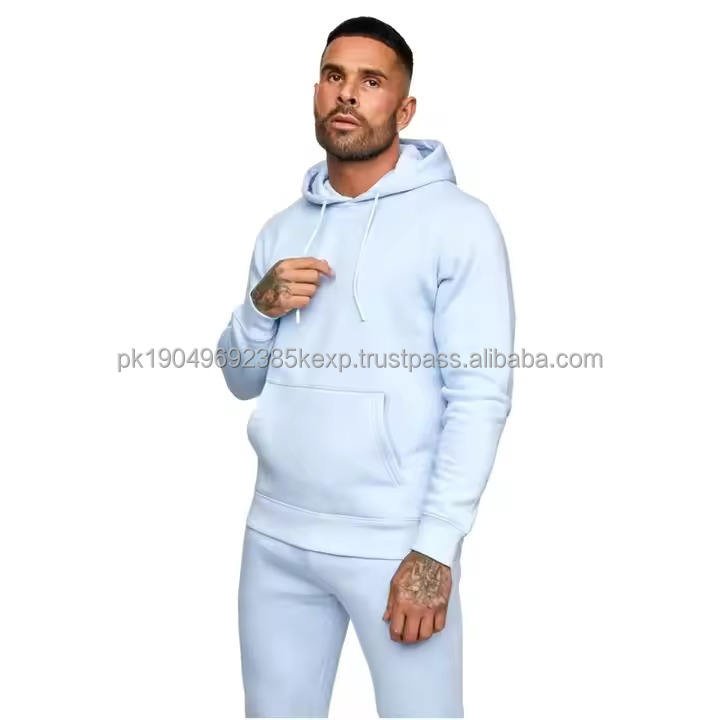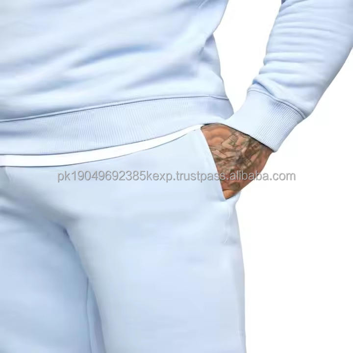 ชุดกีฬาฤดูหนาวผู้ชายคุณภาพสูงพร้อมโลโก้สั่งทำพิเศษ ระบายอากาศได้ดี ลายเรียบ กางเกงขายาวและเสื้อฮู้ด ขายส่งชุดวอร์มเปล่า ปี 2026