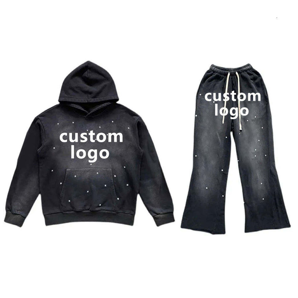 ชุดจ็อกกิ้งทรงบานแบบมีฮู้ดและกางเกงขายาว รุ่นปี 2025 คุณภาพสูง ปรับแต่งได้ สไตล์ดิสเทรส ผ้าหนา