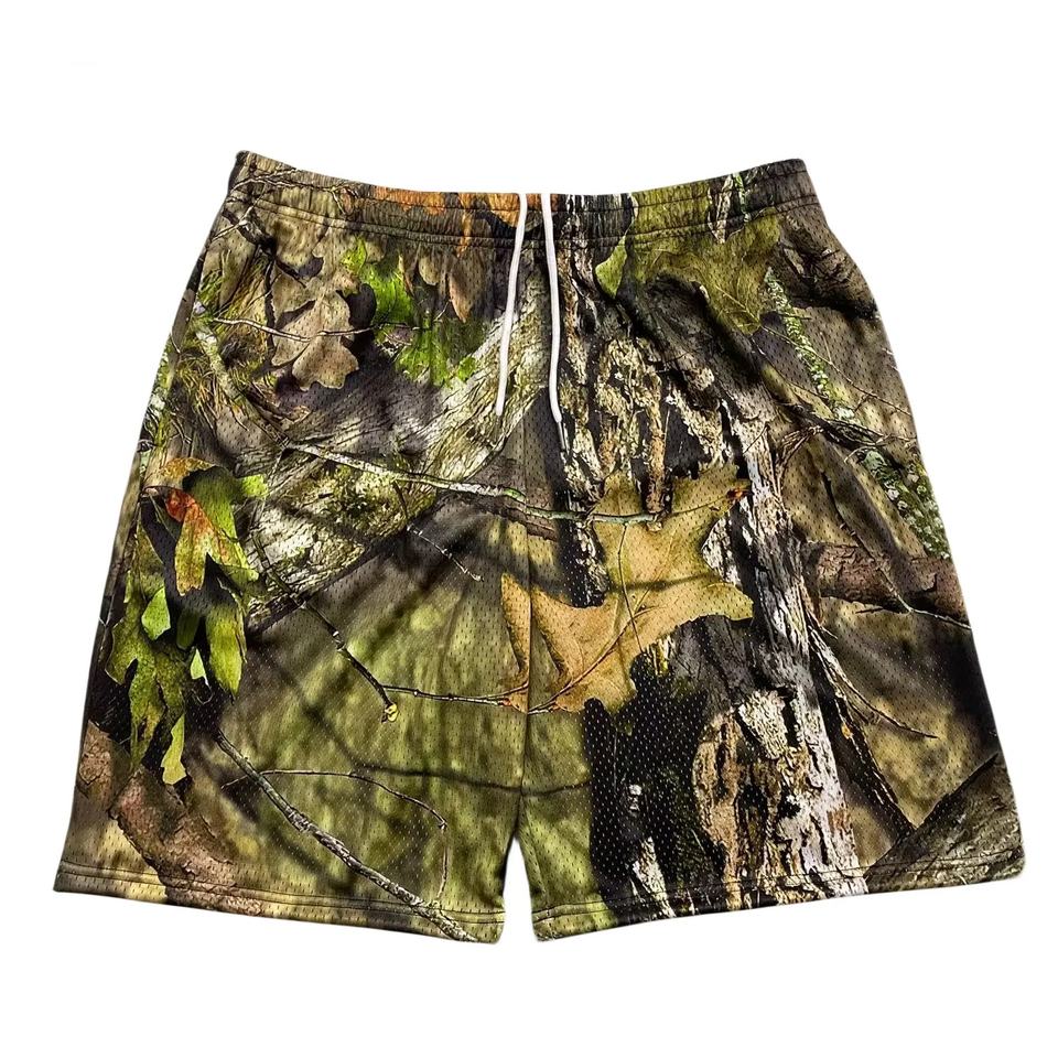 กางเกงขาสั้นตาข่ายลายพรางสำหรับผู้ชายเสื้อบาสเก็ตบอลพิมพ์ลายอินตะเข็บ5นิ้วดีไซน์เนอร์จาก2025